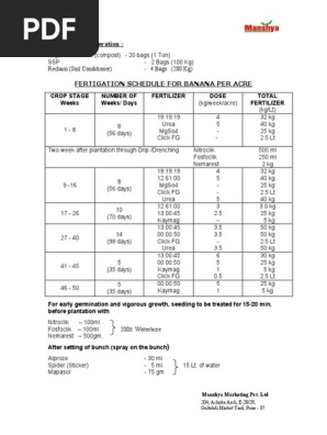 Banana Fertigation Schedule Pdf Fertilizer Horticulture And Gardening